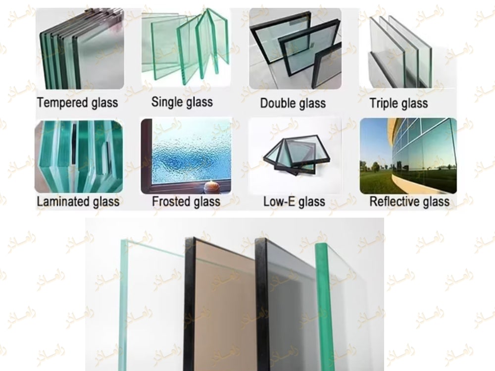 - شیشه ها در انواع رنگ تولید می شوند که می توان به رنگ های، شیشه برنز، دودی، آبی و سبز اشاره نمود.
